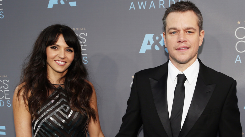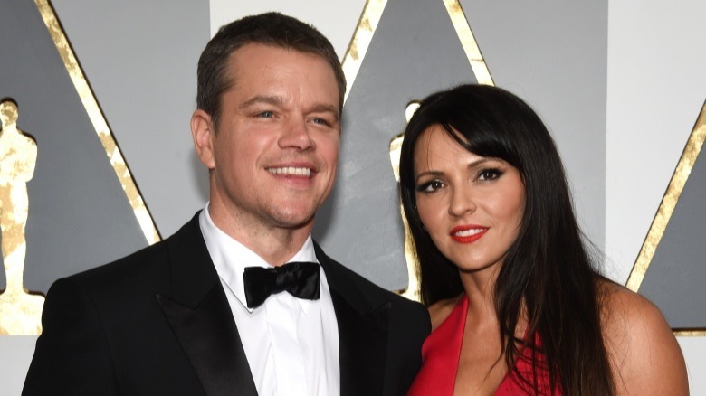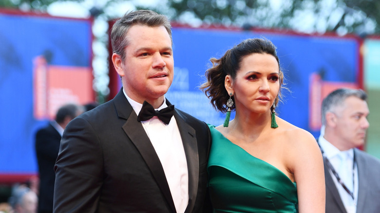According to People, Damon proposed in September that year; by the time they got hitched, Barroso was three months pregnant with the couple's first biological child together. The ceremony was attended by Barroso's then-7-year-old daughter, Alexia, and "some friends," one of whom was not Ben Affleck, according to The New York Times. Just four days prior, Affleck's then-wife, Jennifer Garner, had given birth to their firstborn, Violet.