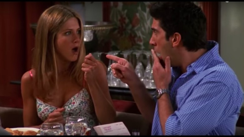 In the Season 10 episode, "The One With Ross' Tan," Joey and Rachel, who've already shared a few kisses, decide to go on their first date. After a lackluster dinner, they awkwardly embrace with about as much passion as a kid getting a kiss on the cheek from grandma.