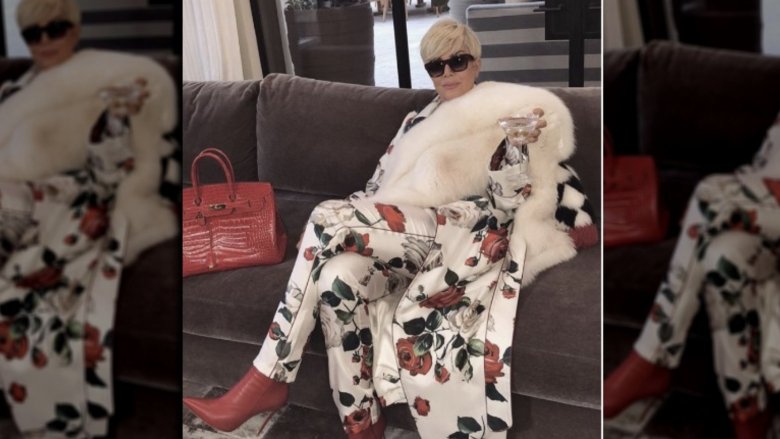 Of course, KUWTK fans know that this isn't the first time that mama Jenner has seriously changed up her style. In October 2017, Jenner's daughter Kim Kardashian posted a photo of her mom with short platinum blonde hair. In the picture in question, Jenner also donned a white and red floral outfit with red heeled boots, a matching Hermès bag, dark sunglasses, and a white fur shawl. Oh, and a martini in her hand. Can't forget that important accessory!