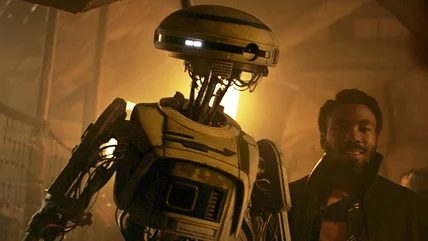 While Star Wars movies have previously featured characters made entirely from CGI, L3-37 was created via a combination of CGI, motion-capture, and live-action effects, with Waller-Bridge standing in for the wiry droid that would take her place in the final movie. She spent the production in green or blue full-body suits with plastic robot parts attached to her frame, giving her a real physical presence in the movie even as most of her humanity was keyed out in post production.