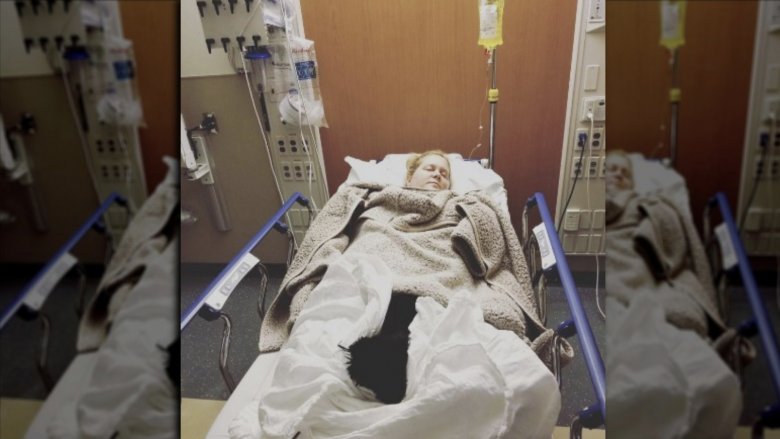 On Thursday, Nov. 15, 2018, the Inside Amy Schumer star took to Instagram to share a photo of herself lying in a hospital bed. In the caption, she revealed that she'd gone to the hospital due — in part, at least — to hyperemesis. According to the Mayo Clinic, hyperemesis gravidarum is a severe form of morning sickness that can cause dehydration and weight loss due to extreme nausea and vomiting. The condition may "require hospitalization and treatment with intravenous (IV) fluids, medications and rarely a feeding tube."