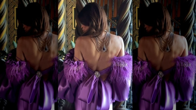 Guilfoyle has obviously decided to prove that Trump's possible indiscretion isn't going to stop her from playing dress up (though that may not necessarily be a good thing). On September 17, she unveiled one of her most skin-baring looks yet: a purple, backless gown adorned with an array of busy accessories, including a large satin bow gathered at the seams with a large, crystal broach, and poofy, feathered sleeves. Guilfoyle, who uploaded the photo to her Instagram Stories, posted the flirty back side of the dress. However, designer Oscar Lopez posted an Instagram reel showcasing the Republican flaunting the dress's modest front as she took photos. Given Guilfoyle's past with inappropriate outfits, it seems those relationship troubles have given her wardrobe a little boost!