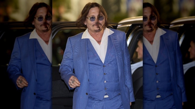 Johnny Depp's life seems to be in a positive upswing since putting his defamation trial against Amber Heard in his rearview mirror — but his wardrobe has seen better days. While promoting his directing gig, "Modi – Three Days on the Wings of Madness" in 2024, Depp cemented his divorced dad status by sporting an unflattering light blue suit. Depp was photographed in the ill-fitting number outside of Hotel Maria Cristina, a cushy upscale hotel near the San Sebastian Film Festival. And while Depp, who's known for rocking a three-piece suit, certainly has several years worth of style wins to pull from, this suit seemed better suited for a car salesman than an actor attempting a career resurgence.