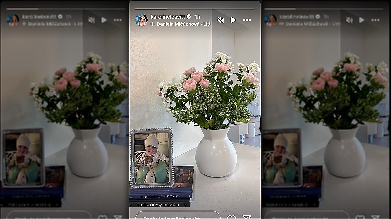From the White House to keeping house? Karoline Leavitt has been increasingly showing signs that she's beyond caring about being press secretary — a less polished appearance, snappiness toward reporters — and a pic she posted over the weekend offered the biggest hint yet. On her July 20, 2025, Instagram Stories, Leavitt shared a still-life photo from an unidentified area of her chicly minimalist house. The image featured a vase of flowers, a framed photo of her son, Niko, and two books: "Theology of Home" and "Theology of Home II." For background music, the Trump staffer chose "Little Things," an instrumental piece frequently used to accompany videos of cute babies, pets, and toddlers. It was a post with lots going on beneath the surface.