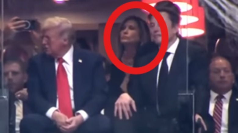 During an exchange with Elon Musk at the memorial, wherein Trump's behavior confirmed what we suspected all along about the billionaire businessmen's on-again, off-again bromance, eagle-eyed viewers at home couldn't help but point out what appeared to be a Melania look-alike sitting directly behind the president in one of the stadium's suites. "Is that supposed to be Melania in the background?" one X user asked pointedly. Another replied, "That's what I was thinking ! Was she super imposed ? Her hair is suddenly much darker — I don't think I saw her in Attendence [sic] today?"