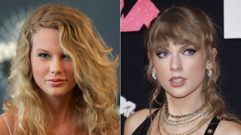 Comparing that photo from Taylor Swift's early career with a recent picture illustrates just how much she has changed over the years. Back then, she often wore her hair in a looser, more natural style, even at high-profile events. In the older shot, her curls are soft and voluminous, with strands casually framing her face. The newer image, while still tousled, has a more polished, intentional feel. Changes in hairstyles are common, but what really stands out when comparing these two pictures is the difference in Swift's eyes. The "Last Kiss" singer previously went heavy on the mascara and eyeliner to emphasize her catlike features. Makeup would not be enough to account for the transformation, however, as the pop star went even harder with applying eyeliner later on, and looked to have eyelash extensions. Looking at the two photos, the shape of Swift's eyes is different today from what it was in her younger years.