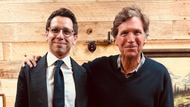 Florida's Republican gubernatorial candidate James Fishback took to X, formerly known as Twitter, to promote his January 2026 interview with Tucker Carlson, but the picture he shared of himself posing with the conservative political pundit got people talking for reasons entirely unrelated to the upcoming midterm elections. Social media users were more interested in Carlson's looks, which suggested he has lost a considerable amount of weight — and fast. And they couldn't help but speculate that he may have used a weight-loss drug to aid him.