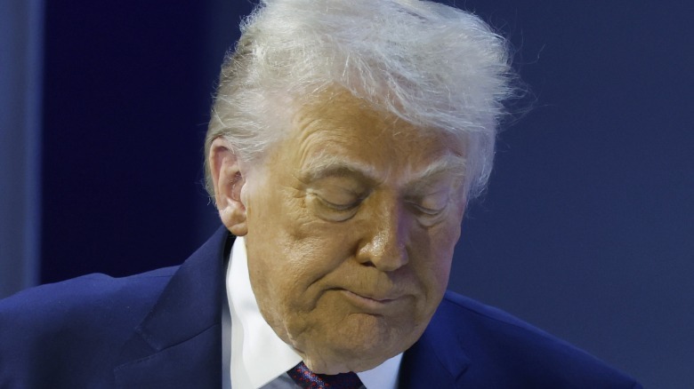 Donald Trump had a bronzer disaster while visiting Davos, Switzerland, for the World Economic Forum. On January 22, POTUS met with other world leaders for the ceremonial signing of his Board of Peace that was aimed at stopping the conflict in Gaza — it should be noted that multiple allies of the United States refrained from joining the signing. It was an important day for Trump, who apparently wanted to look his best as he caked on the cosmetic products. His hair looked bleached beyond recognition, as it was not only frail and wispy but also a stark white color. The president's eyebrows were the same transparent white as his mop, while he sported a cobalt blue suit. Perhaps it was for the cameras, or maybe he was trying to brighten his mood during the winter months, but Trump had slathered on the bronzer, and it stood in an obvious contrast to his hair and attire. The cakey orange-brown coloring juxtaposed not only his hairline, but also was a much darker skin tone than the pale look on his hands. Unfortunately for the Commander-in-Chief, this makeup fail was not an isolated incident.
