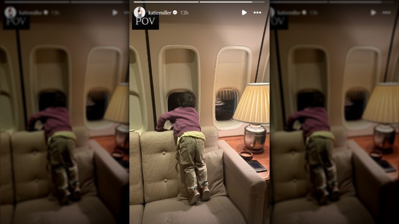 Naturally, the Miller family wasn't seated in just any ol' general admission seats. Instead, they were comfortably perched in a premium seating area, far away from the general public, ultimately giving the kiddos free rein to run around and enjoy their complimentary peanuts and crackerjacks in privacy. Oh yeah, and a handy dandy countertop to sit on so they had the best view of the action, too. The family also regularly travels on private jets, judging by Katie's Instagram Stories, so the luxury doesn't begin when they arrive at their destination.