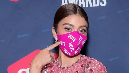 The 2020 CMT Awards host, actress Sarah Hyland, stunned in a few stellar looks throughout the evening. The Modern Family star even got a little political on the red carpet with a pink mask that read "VOTE" all over it, which designer Christian Siriano shouted out on Twitter.