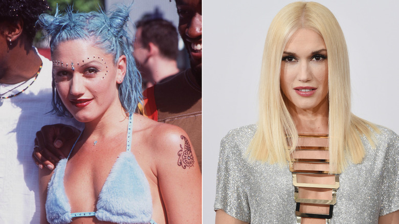 As one of the biggest style icons of the '90s, Gwen Stefani's original look was all about plaid pants, studded belts, and exposed midriff. When she wasn't rocking her notorious bleach blonde locks, Stefani walked around with bright pink or blue-bubble-gum-colored hair that she always somehow managed to match her outfits. In an interview with Vogue, the singer credited her fashion sense to her mother, as well as her love of Marilyn Monroe and James Dean.