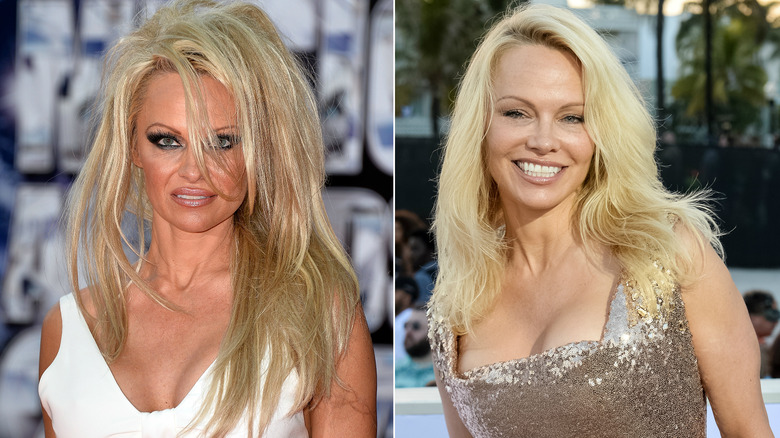 Once known for her tiny red bathing suit and slow motion runs on the sands of Baywatch, Pamela Anderson was never one to shy away from the extreme trends. From her dramatic smoky eye makeup and pink lip gloss to her tribal band tattoo and outfits so small they hardly deserved to be called such a thing, Anderson's look hasn't changed in decades. Not only did her makeunder make it nearly impossible to recognize the icon on the red carpet, but it has completely transformed her image.