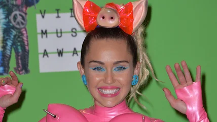 However, the 2015 VMAs, which Cyrus hosted, was the motherload of inappropriate outfits. There was the barely-there silver Versace suspender strap thing and matching thigh-highs ensemble she wore on the red carpet, the flesh-flashing Versace cut-out number with pom poms strategically placed that she later changed into, and the outstanding plastic see-through Mamadoux dress with just a few buttons to save her dignity that she busted out with — matched with some utterly ludicrous white Courrèges sunglasses. Oh, and the pink latex just-about-nip-covering strap and crotch-skimming pants. Yep, Miley's gone and got herself all grown-up.