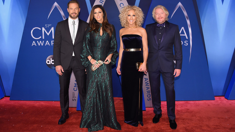The Little Big Town singer didn't exactly stun the CMA crowd when she debuted an emerald green, animal print gown on the red carpet. While it was far from the worst look of the night, it did not do Karen Fairchild any favors. With the dress' puffy long sleeves and busy pattern, the "Better Man" songstress looked lost in the Andrew Gn design (via InStyle). Her green rings and cheetah clutch, which resembled an actual cheetah, certainly did Fairchild no favors.